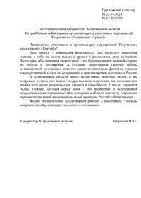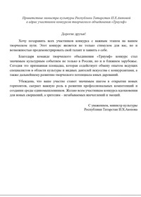 Перечень государственных структур Российской Федерации, поддерживающих конкурсы творческого объединения «Триумф»
