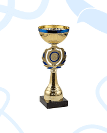 Наградной кубок, выполненный в ярком сочетании тонов: синий с золотом.Возможно изготовление и нанесение именной шильды на основание под запрос.Высота изделия: 260 мм, диаметр чаши 120 мм.