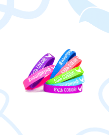 Фирменные браслеты из эластичного материала ярких оттенков.