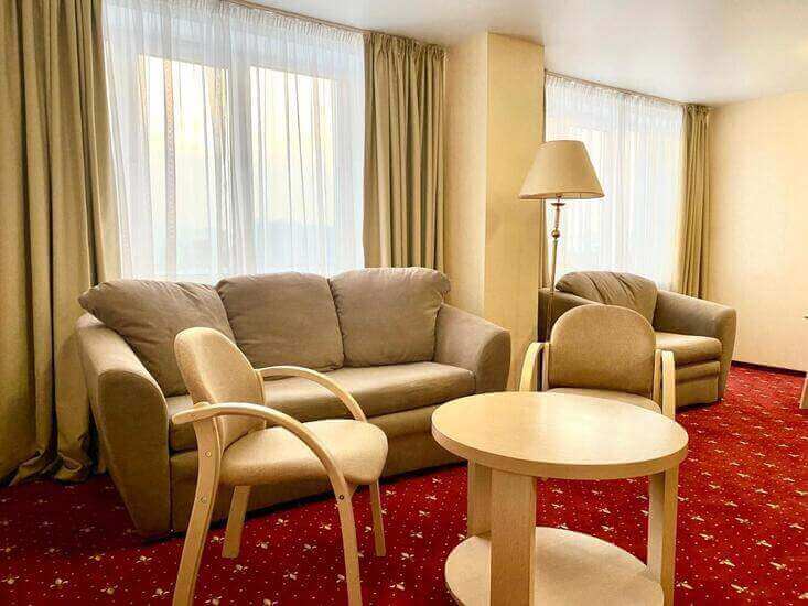 Проживаниев 3* отеле "АМАКС Сити отель" в центре Красноярска в номерах с панорамным видом на правый берег Енисея. В стоимость размещения включены завтраки по системе "шведский стол".
