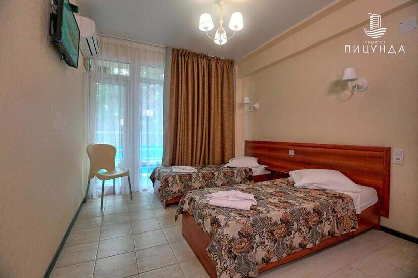 Этот двухзвёздочный пансионат стоит практически на границе со знаменитым Пицундским заповедником с его реликтовым сосновым лесом. Это место, где морской бриз сливается с воздухом хвойного леса, обладает уникальной целительной силой. В трёх минутах ходьбы от пансионата расположены Андреевский собор (0,25 м) и Музей истории, а пляж Пицунды находится всего в 900 метрах от центрального здания.