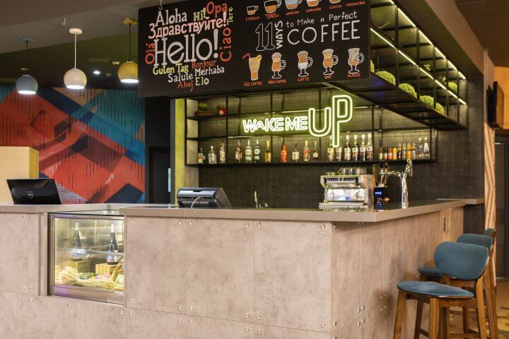На территории работает ресторан 74 Urban Food, а также бар для отдыха в уютной обстановке. Для деловых мероприятий предусмотрены три конференц-зала с максимальной вместимостью до 65 человек.