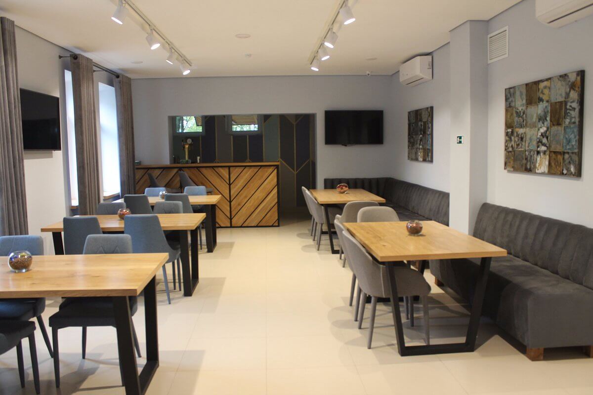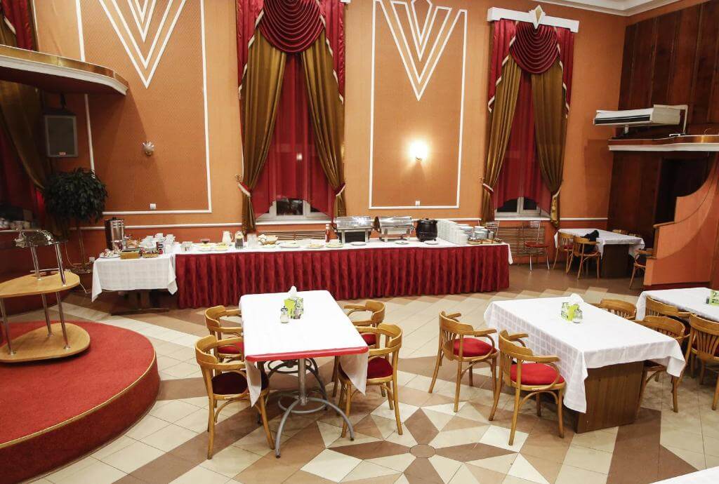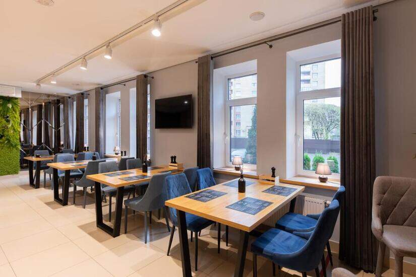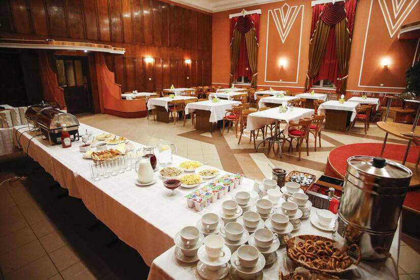 Ресторан отеля гордится тем, что в его меню всегда присутствует свежая речная рыба из псковских рек и озёр. В тёплое время года для обедов и ужинов открыта летняя веранда. Также при гостинице работают салон-парикмахерская и прачечная, в которой ваши вещи будут приведены в порядок всего за 4 часа.