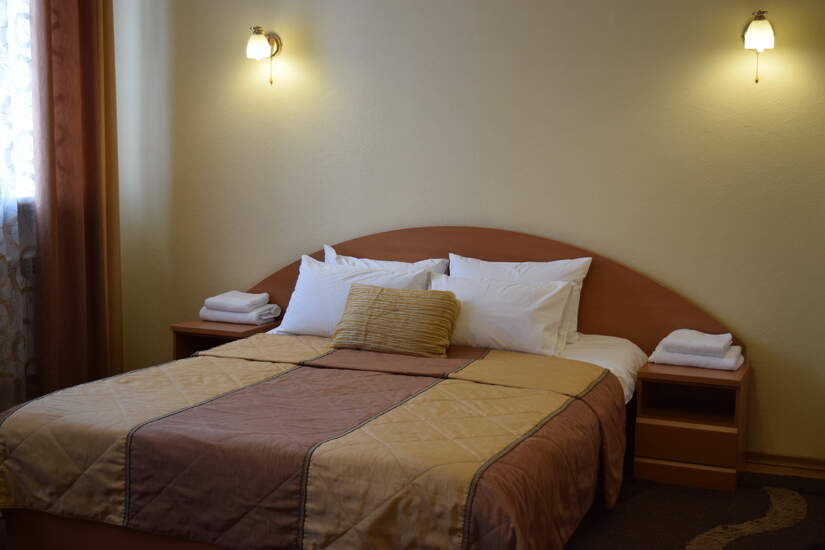 В «Чайке» всё сделано для комфортного проживания гостей. Большие двухместные номера с удобной мебелью и необходимыми для полноценного отдыха удобствами (телевизор, холодильник, чайник и собственная ванная с душевой, полотенца). Уютное оформление номеров отеля, современные интерьеры – все здесь помогает настроиться на приятный отдых. В холлах всегда полные кулеры с водой, гладильная доска с утюгом.