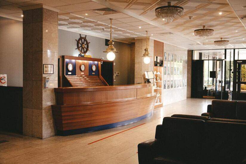 Узнаваемое здание этой трёхзвёздочной гостиницы, напоминающее современный теплоход, стоит прямо на берегу залива Салакка-Лахти, напротив деревянной ладьи викингов, создавая интересную перекличку эпох. Местоположение отеля крайне удобно для тех, кто хочет остановиться рядом с вокзалом: от железнодорожного вокзала города (0,55 км) сюда можно дойти всего за 7 минут, а автовокзал расположен и того ближе.