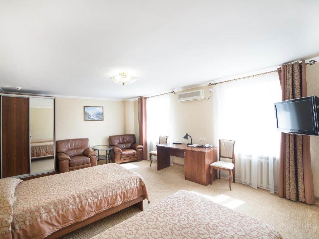 В номерном фонде гостиницы представлены 100 номеров различной степени комфортности, в которых может разместиться до 130 человек. В распоряжении гостей кабельное телевидение и Wi-Fi.
