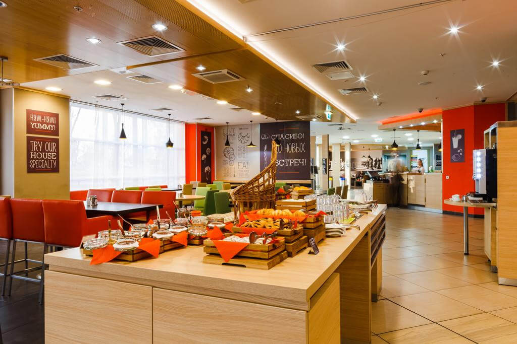 На территории работает ресторан 74 Urban Food, а также бар для отдыха в уютной обстановке. Для деловых мероприятий предусмотрены три конференц-зала с максимальной вместимостью до 65 человек.