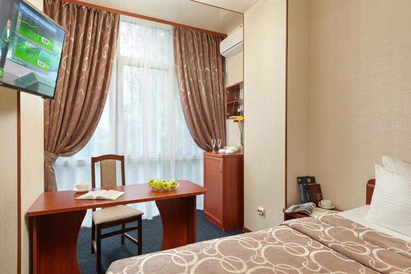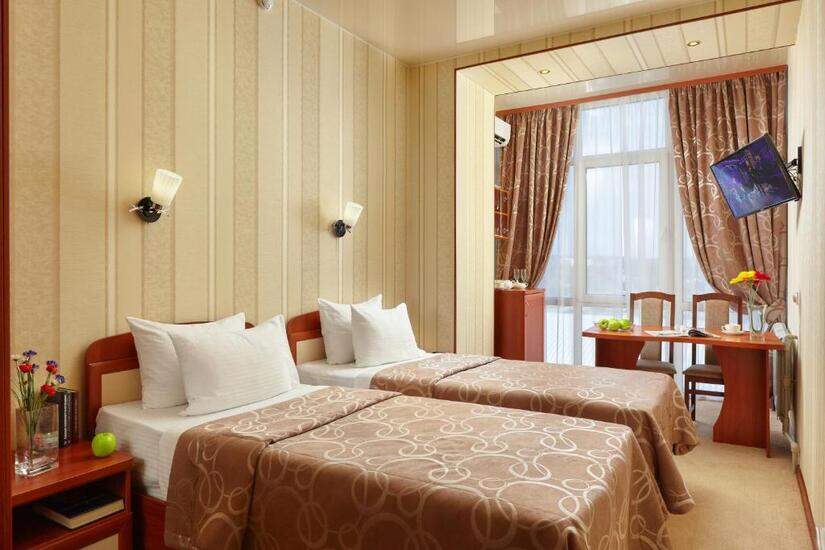 Гости могут выбрать номер одной из семи разных категорий – в каждом из них будет бесплатный Wi-Fi, телевизор, холодильник, письменный стол и кондиционер. Приятная деталь: в «Русском капитале» работают парикмахер и мастер ногтевого сервиса.